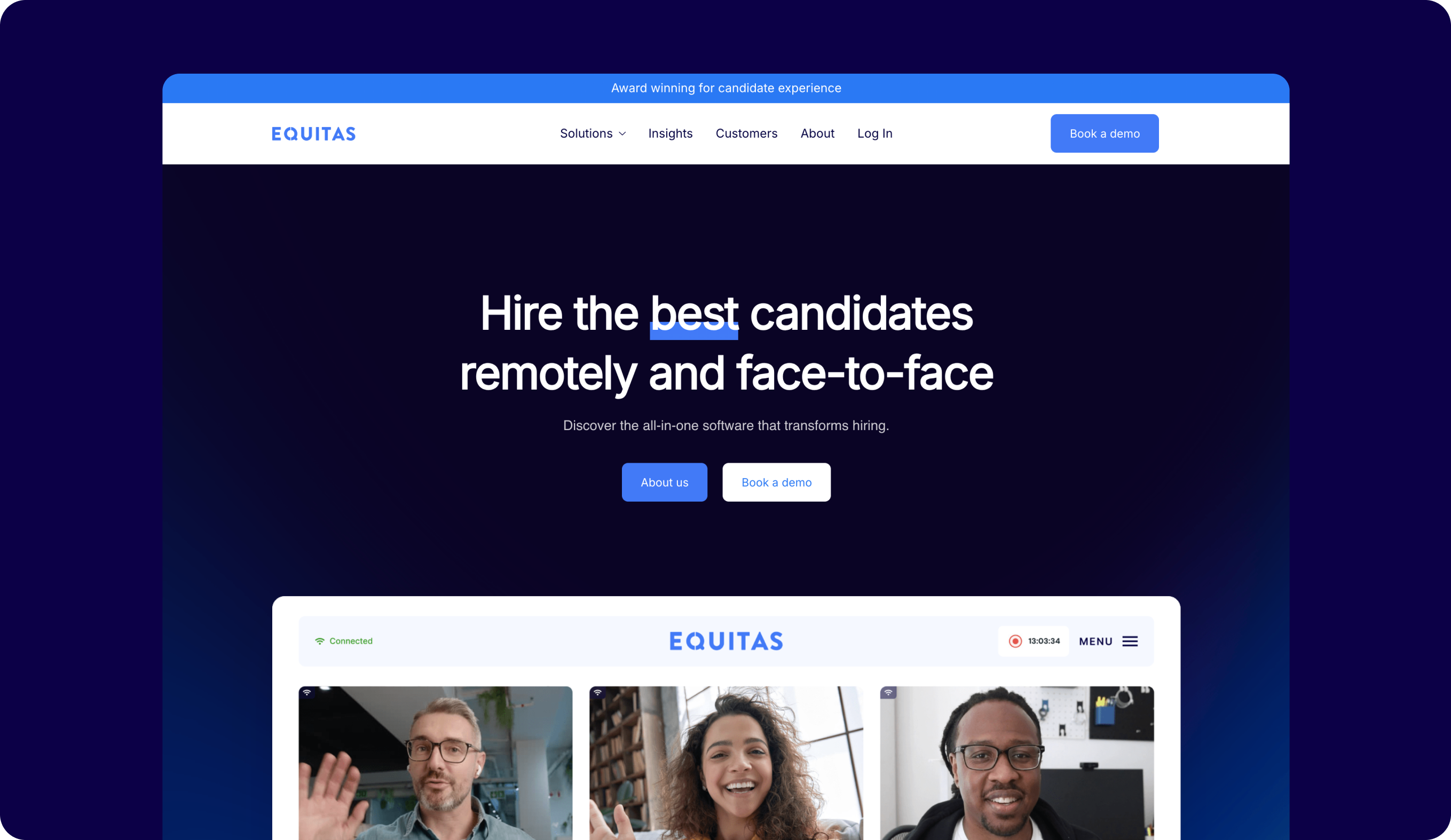 Equitas is an interview intelligence software designed to aid in fair and inclusive hiring, enabling companies to build diverse teams.